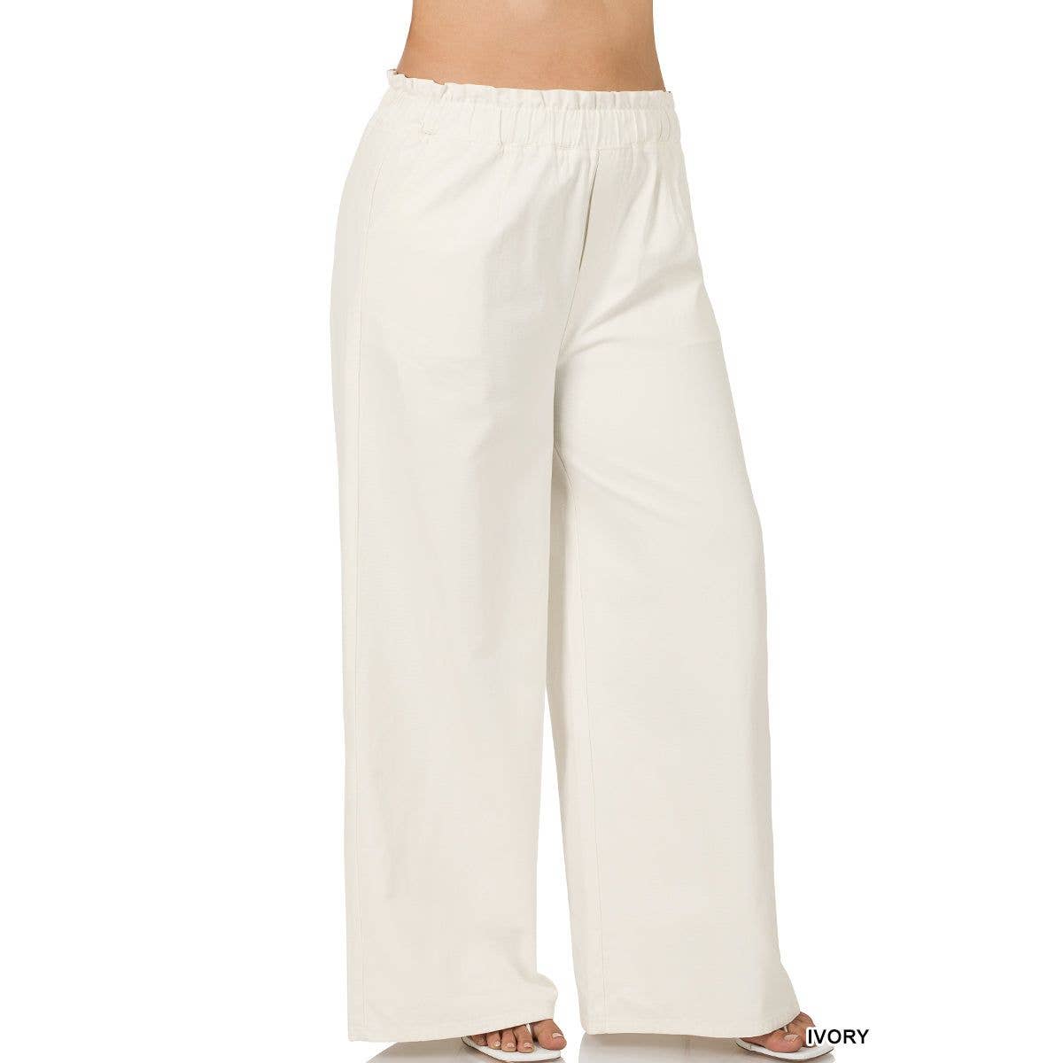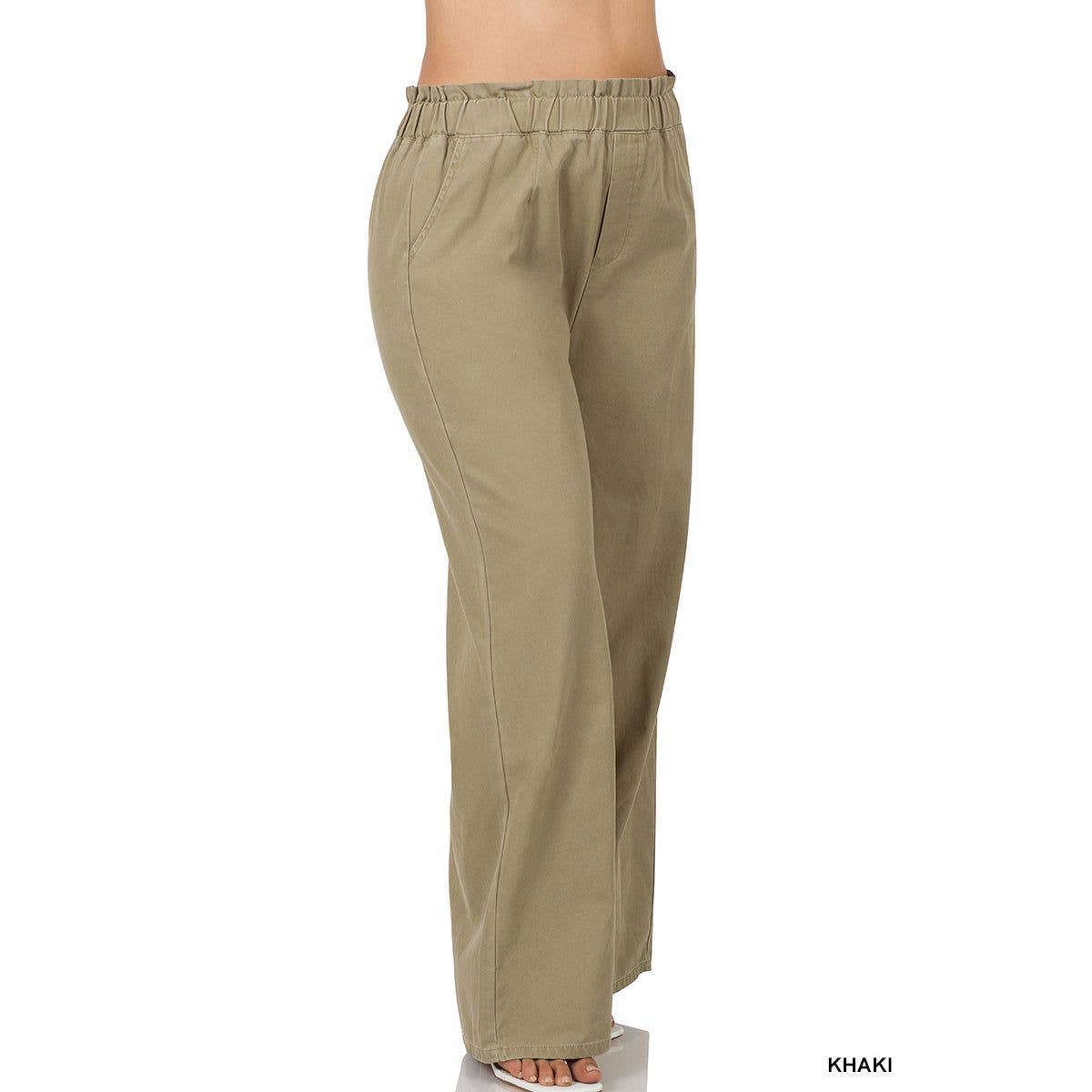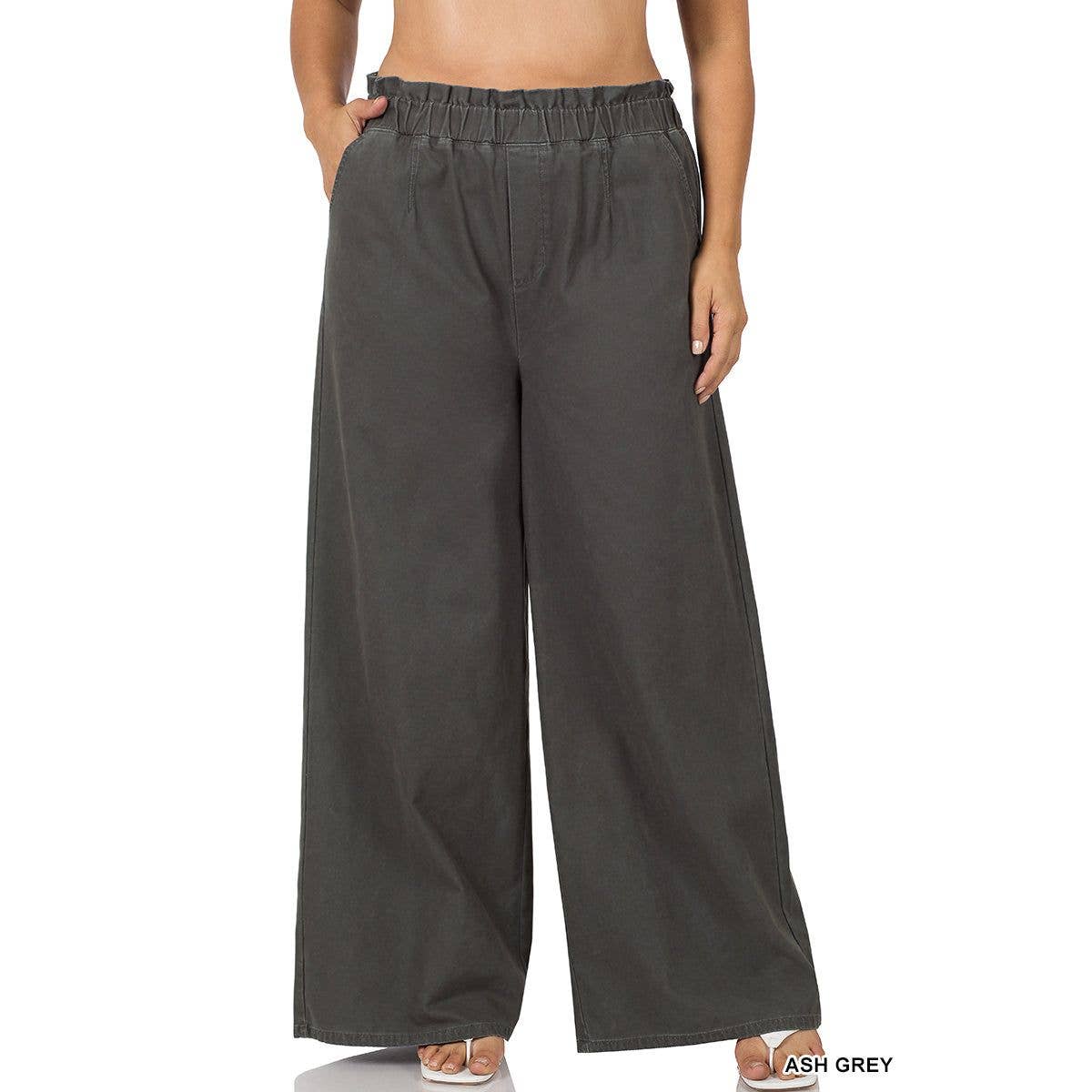PLUS STONE WASHED CANVAS PAPERBAG WIDE LEG PANTS