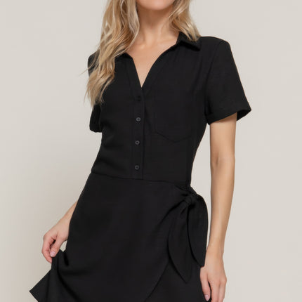 Button Down Side Bow Linen Effect Mini Dress