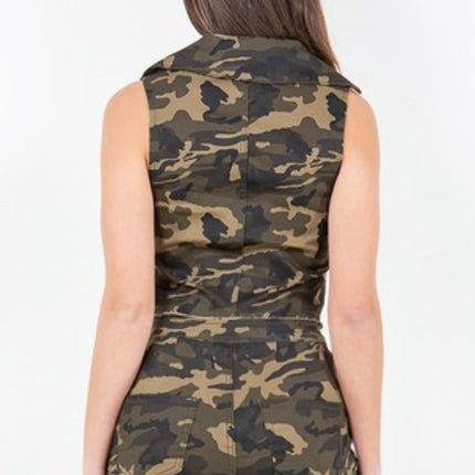 The Zip-Up Camo Crop Denim Vest is a trendy and edgy addition to your wardrobe. This crop denim vest features...