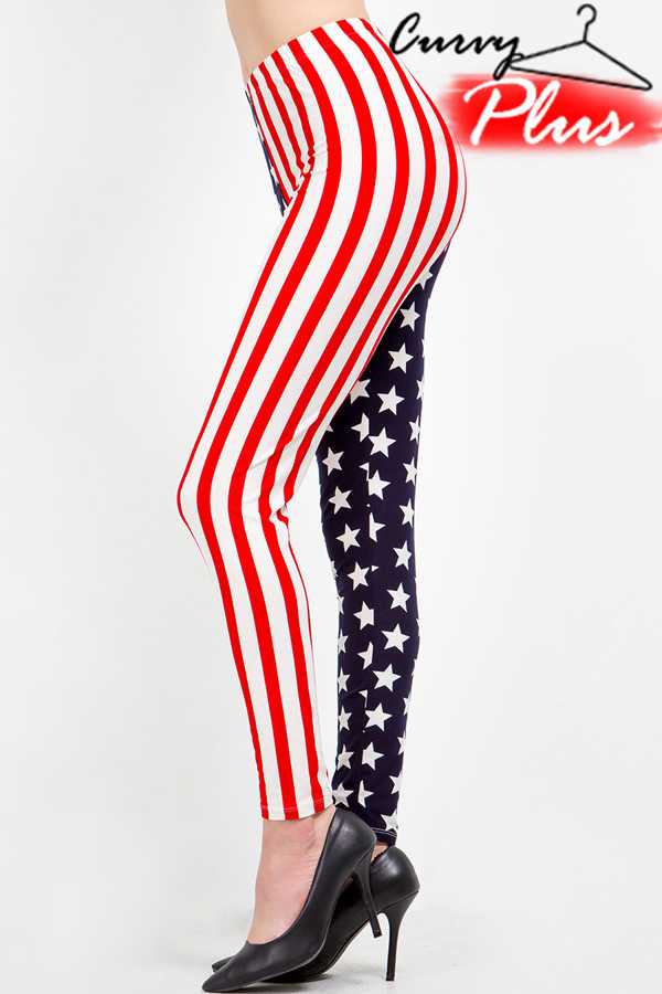 Slip into comfort with these patriotic plus-size leggings featuring a bold American flag print. The luxuriously soft peach skin fabric...