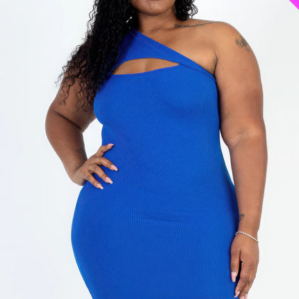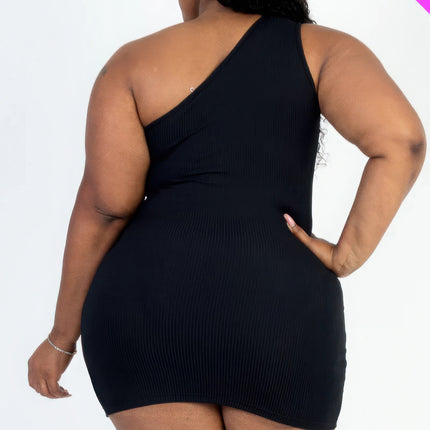 Enhance your wardrobe with our Plus Size Ribbed One Shoulder Cutout Front Casual Mini Bodycon Dress, a sophisticated and modern...