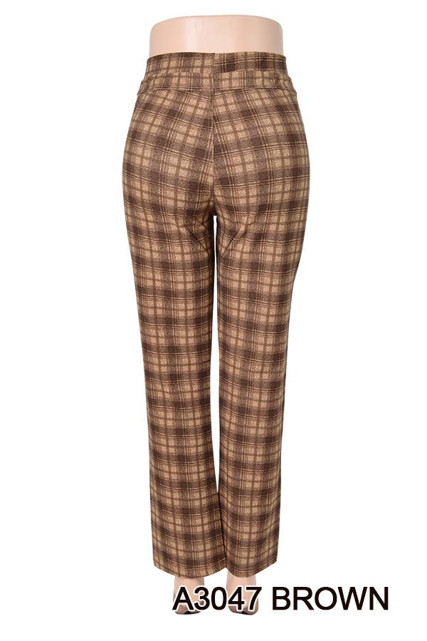 High Waist Straight Leg Stretch Long Lady Pants: Brown