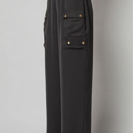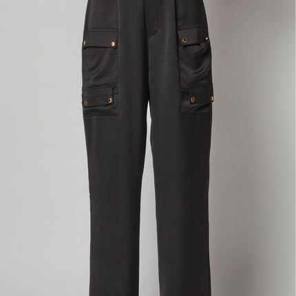 Satin Cargo Pocket Wide Leg Pants