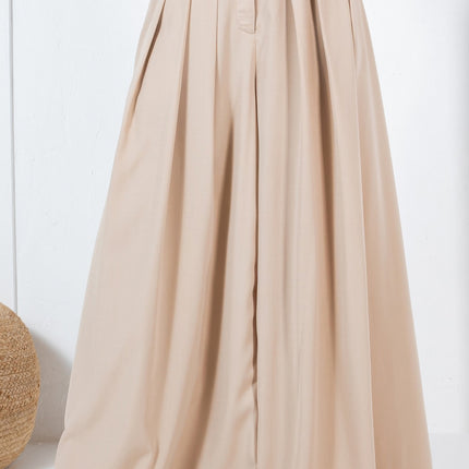 Embrace effortless elegance with our Large Hem Wide Leg Pleated Solid Pants. These stylish pants combine a sophisticated wide-leg design...