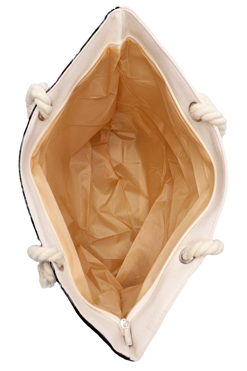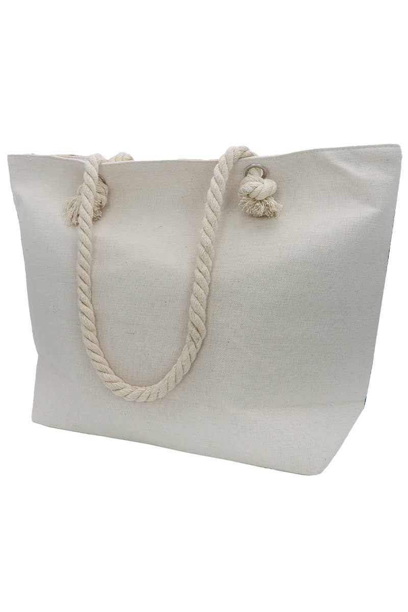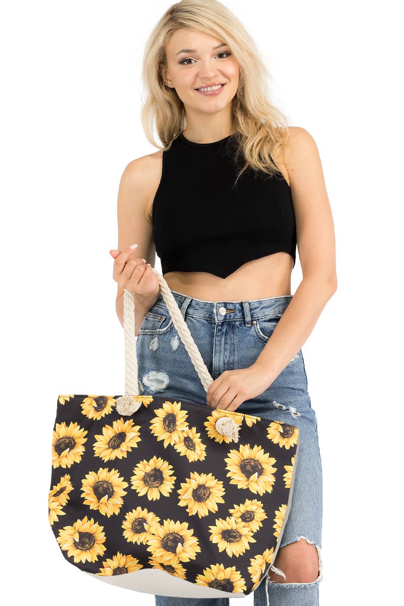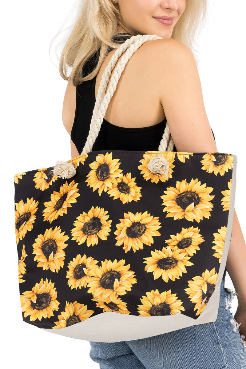 Sunflower Print Rope Handle Canvas Tote Bag