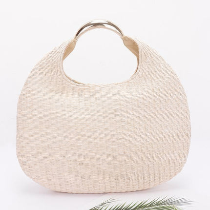 Elevate your style effortlessly with our Faux Straw Metal Handle Hobo Bag. The perfect combination of relaxed chic and...