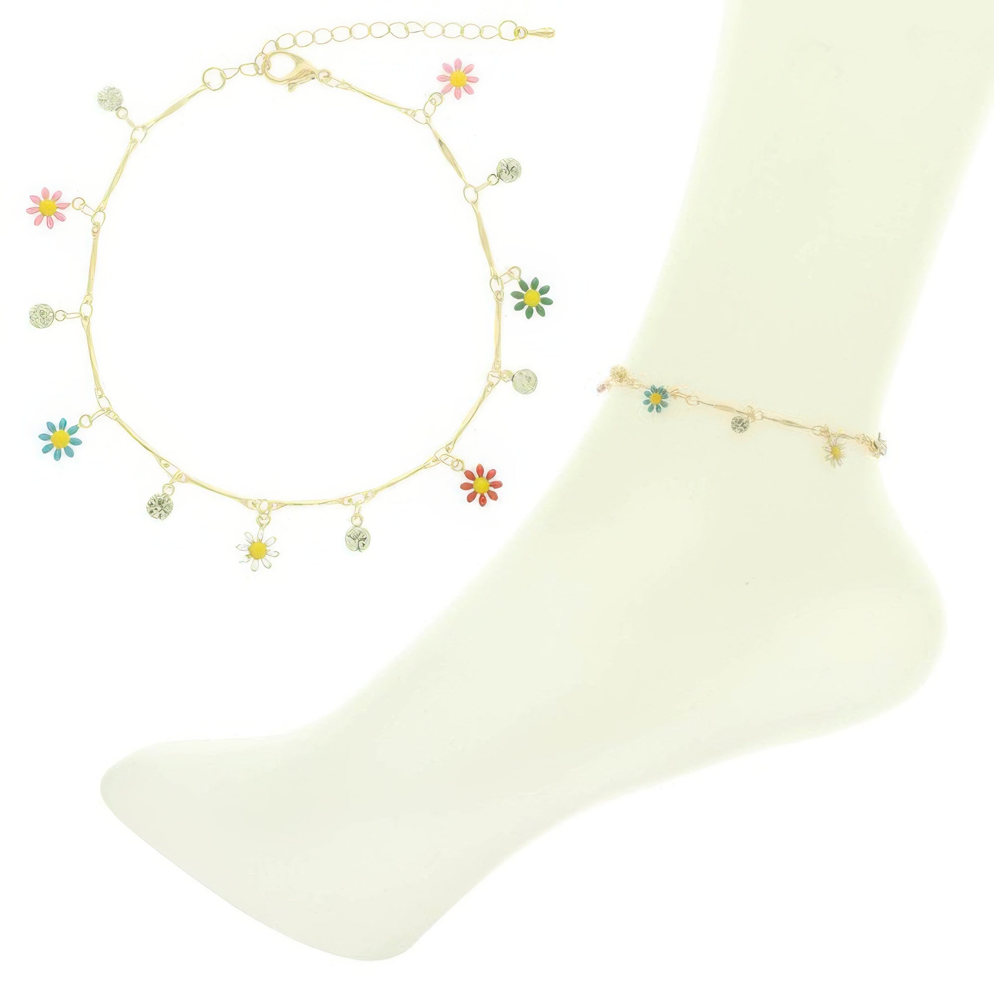 Product Description:Brighten your style with the Daisy Theme Chain Charm Anklet. This gold-tone ankle chain features colorful flower charms with...
